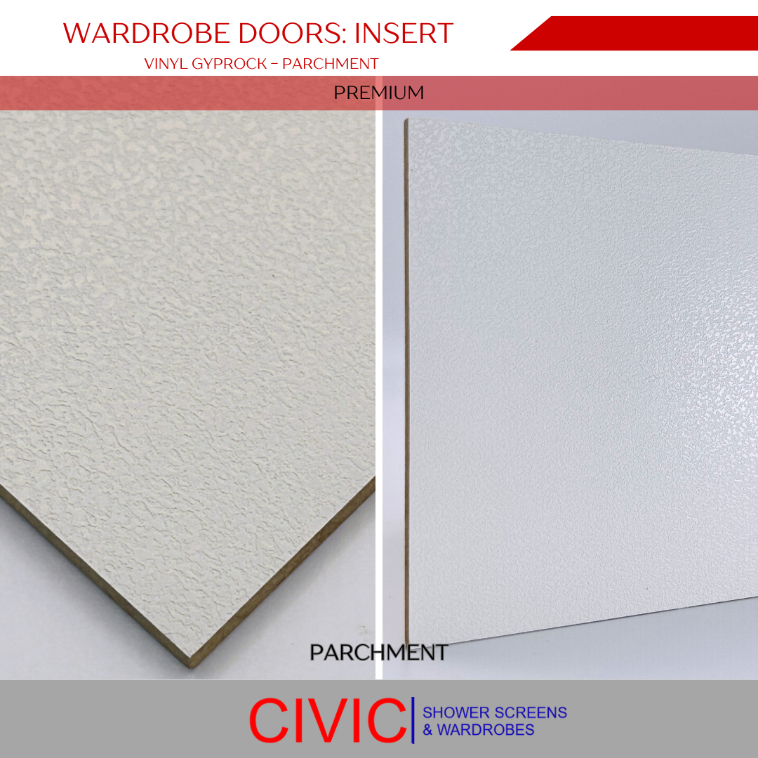 - Vinyl gyprock insert colours; only Glacier/ White available through online ordering.