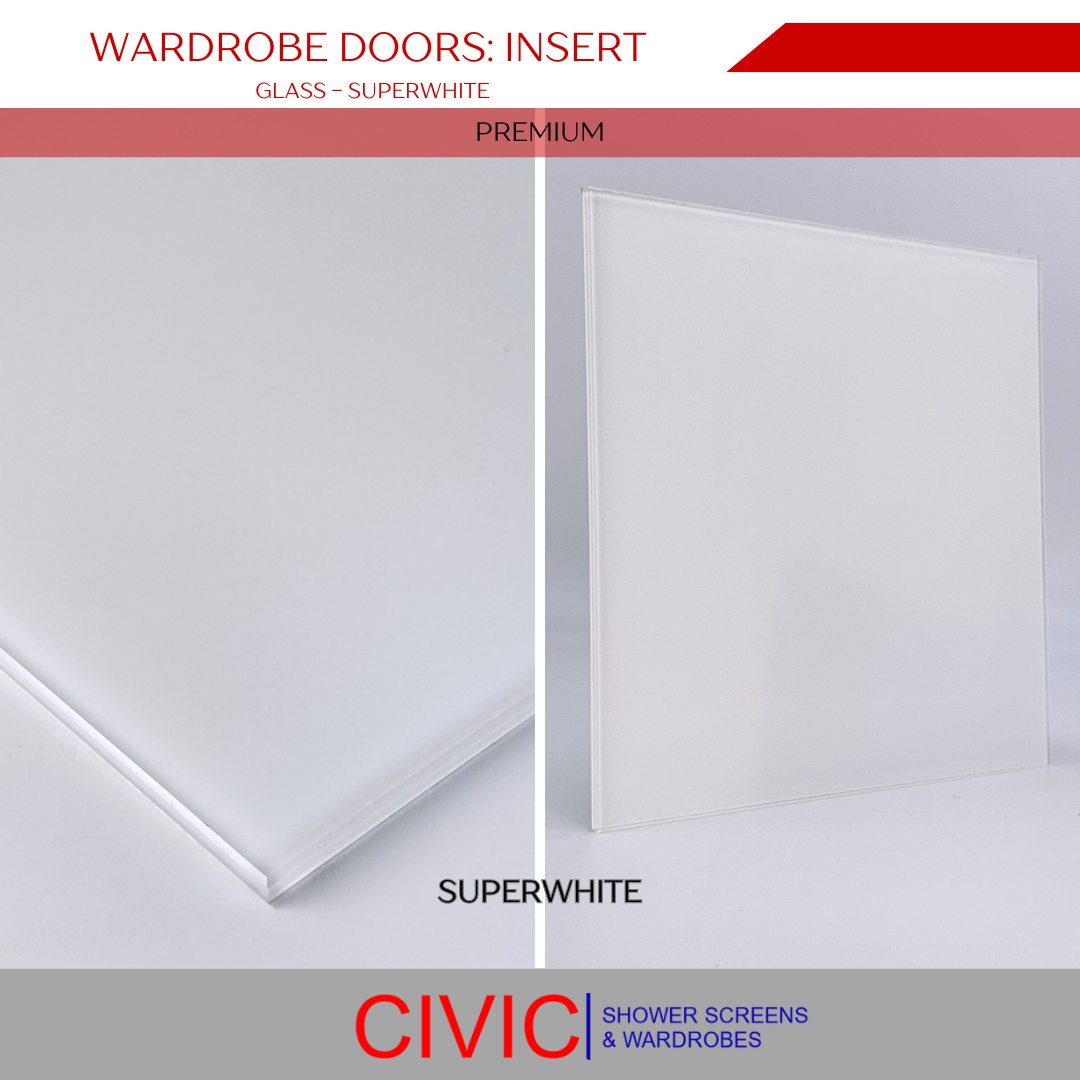 The cost of Frameless Wardrobe Doors depends on your chosen insert type, finishes, and track options. Book a free measure and quote with Civic’s wardrobe experts for a tailored solution.