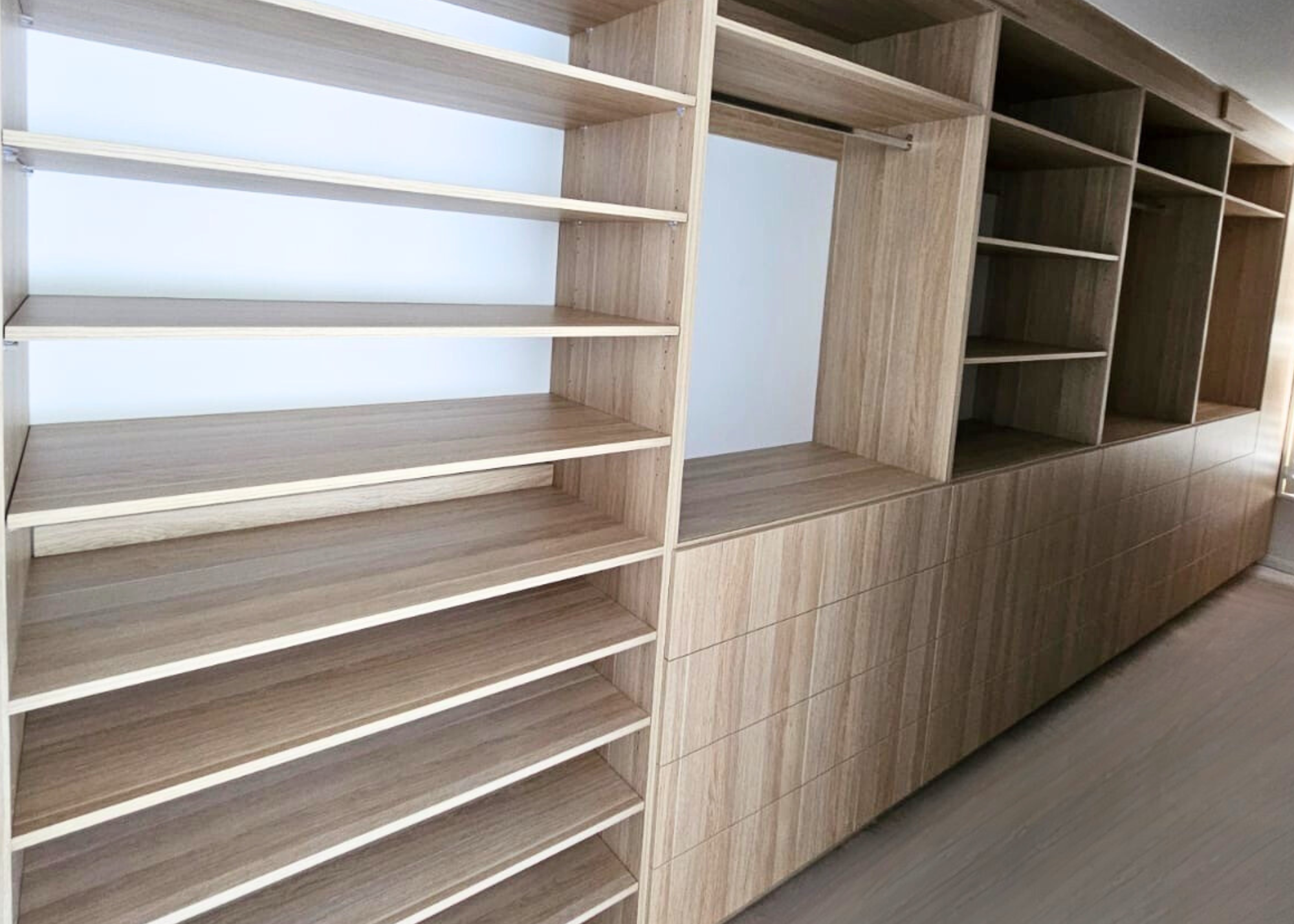 - Civic’s expert installers ensure your wardrobe is precisely measured and securely fitted, including custom shelving and accessories.