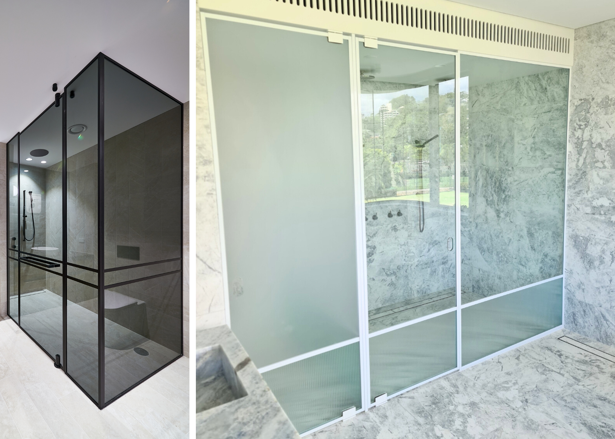Choose from a range of glass colours, textures, frames, and hardware finishes for a tailored design.