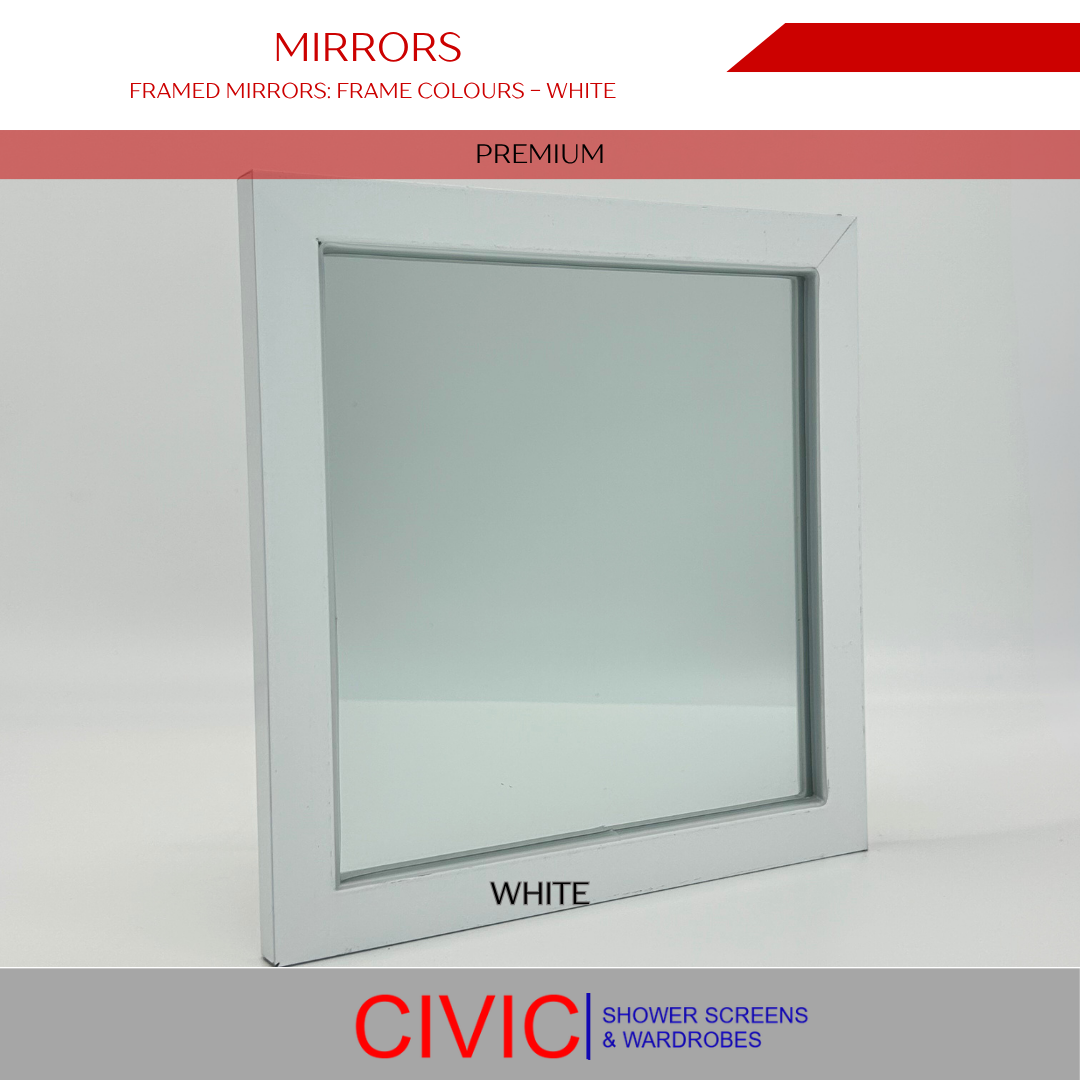 Civic’s Framed Mirrors provide a timeless and durable solution for your bathroom. The clean lines and variety of frame colours ensure these mirrors complement a wide range of bathroom styles. Whether you’re designing a traditional space or a more contemporary layout, our 6mm Framed Mirrors provide both style and practicality.