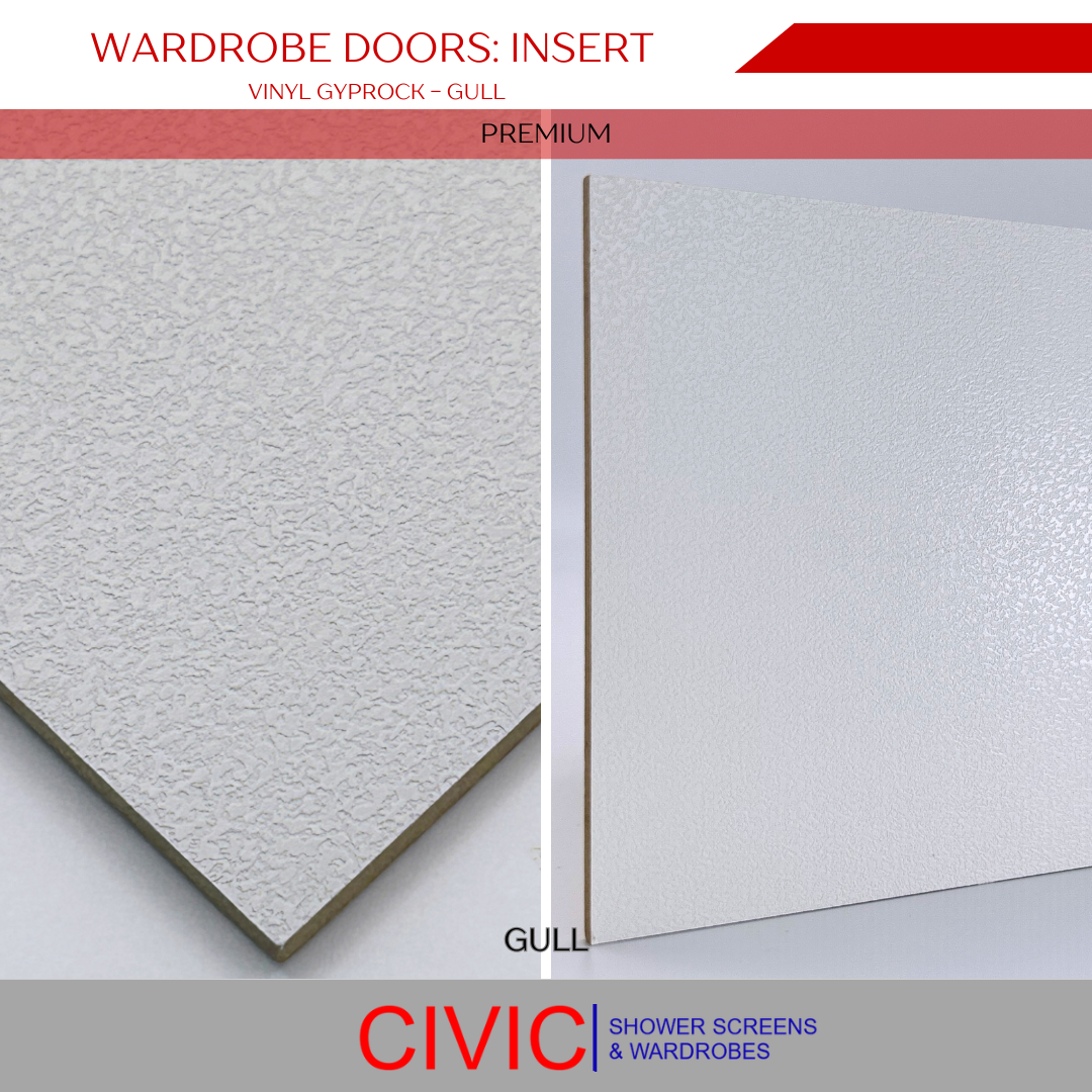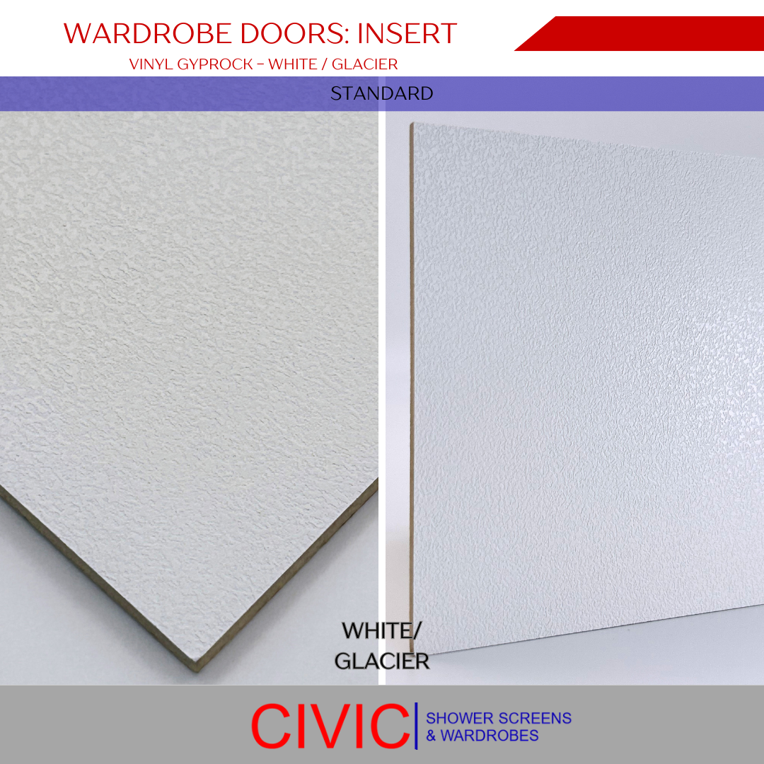 - Vinyl gyprock insert colours; only Glacier/ White available through online ordering.