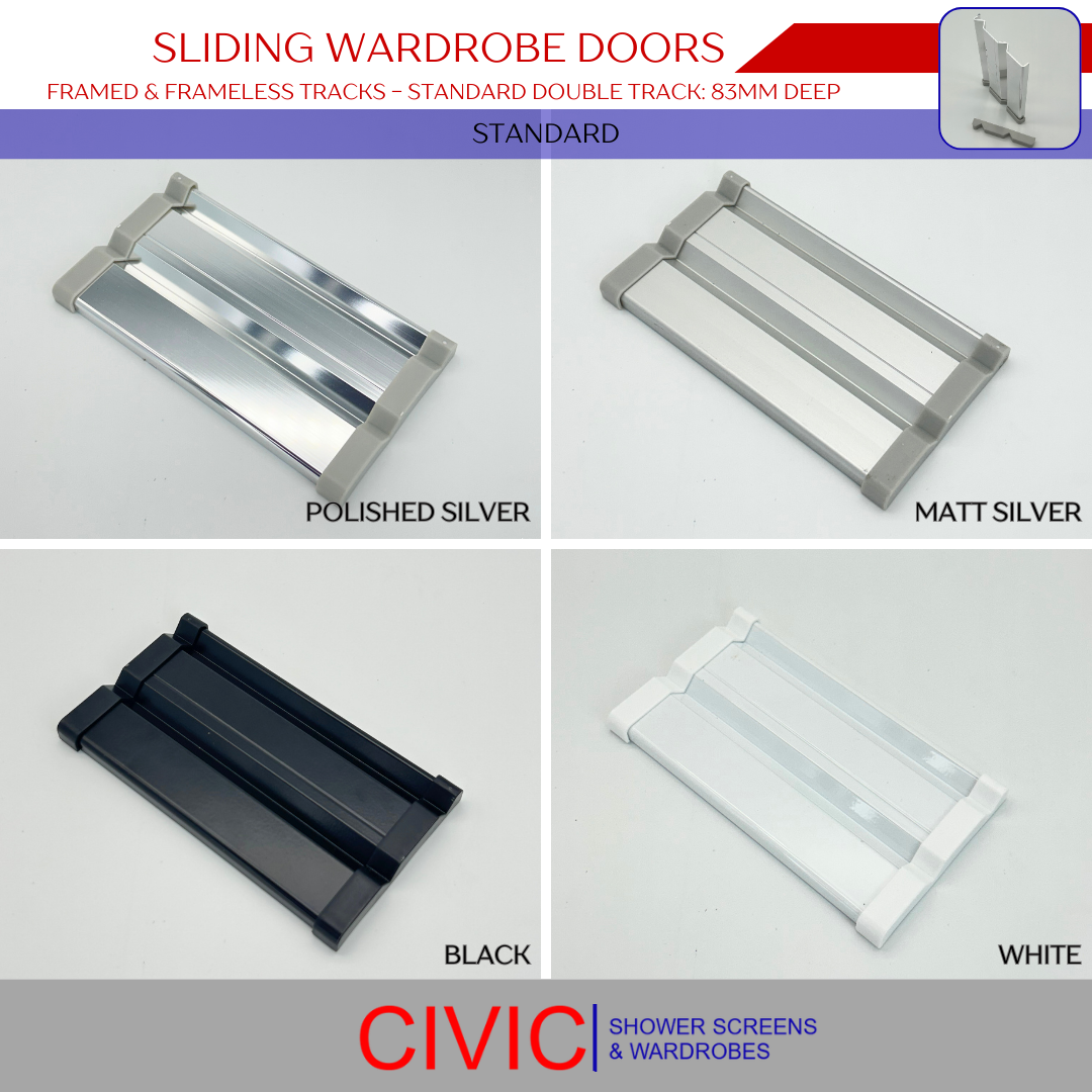 - These track options are for framed and frameless doors, however, slimline doors have their own unique track types to suit the slimmer design. Consider these options carefully to ensure your wardrobe doors glide smoothly and fit perfectly with your space.