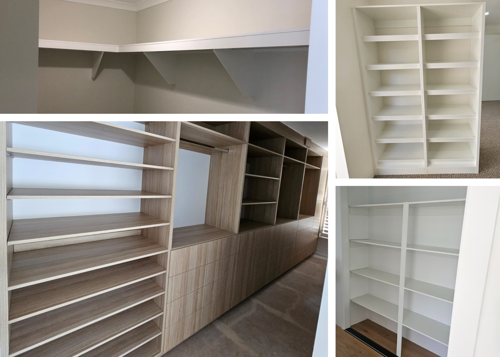 Choose from adjustable, fixed, glass, or specialised shelf designs, including hat, shoe, and top shelves, to suit your specific storage needs.